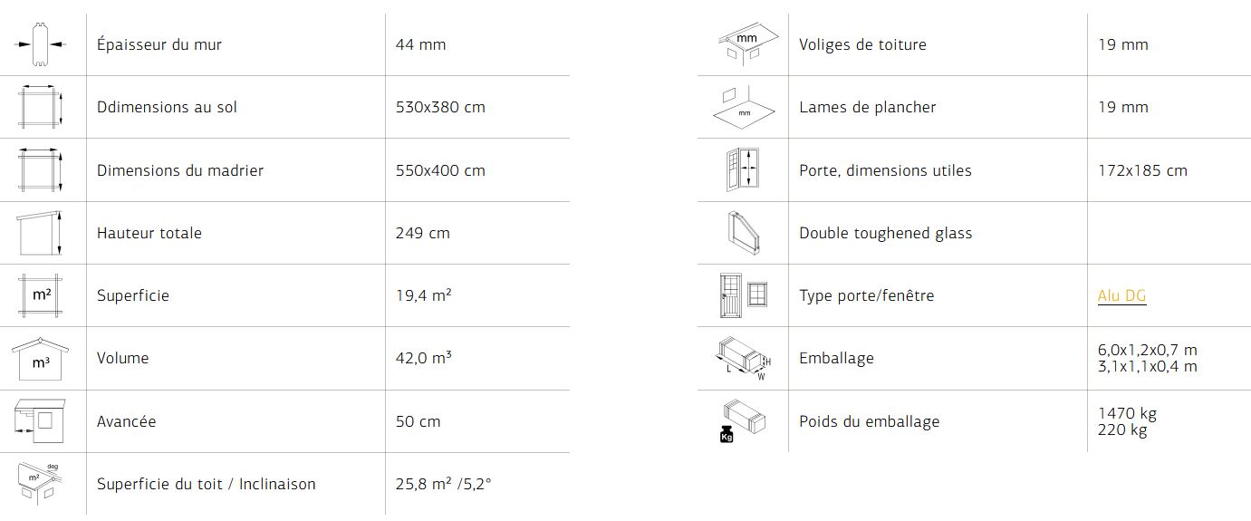 Abri muni d’une pente moderne, idéal pour agrémenter votre jardin, il a la particularité d’être lumineux avec une porte coulissante verre trempé 4.16.4 mm avec seuil plat couvert en inox. Réalisé en madriers de 44 mm double emboîtement, ce modèle d’une faible hauteur vous garantira une solidité et une aisance de construction. Plancher sur chevrons traités autoclave et lambris sous toiture 19 mm.