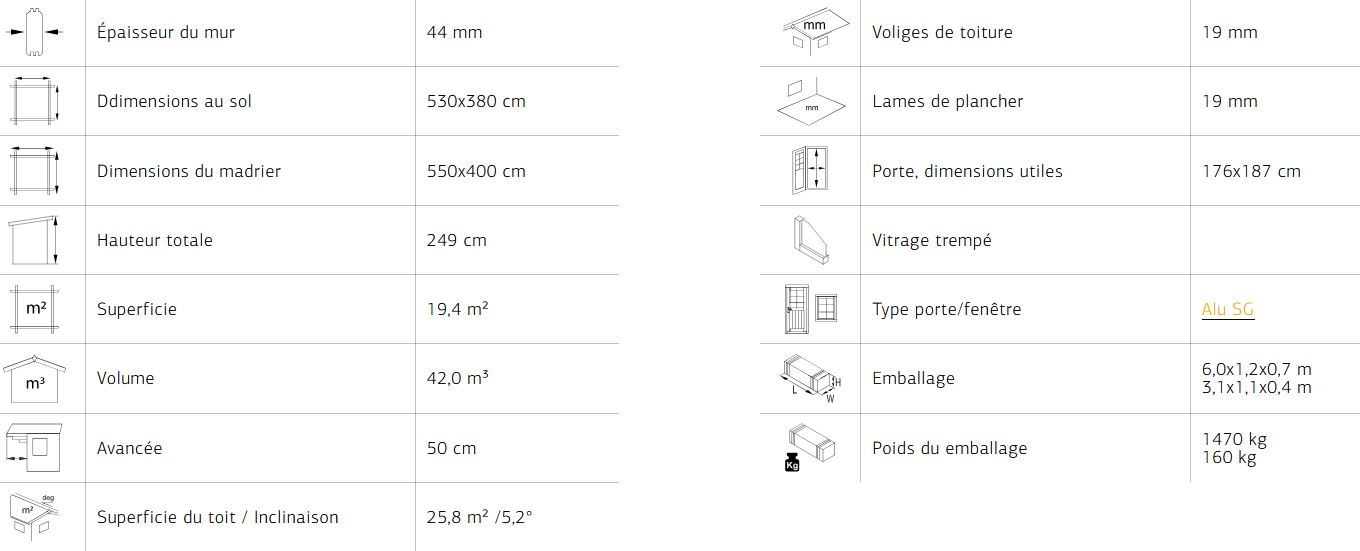 Abri muni d’une pente moderne, idéal pour agrémenter votre jardin, il a la particularité d’être lumineux avec une porte coulissante verre trempé 4 mm avec seuil plat couvert en inox. Réalisé en madriers de 44 mm double emboîtement, ce modèle d’une faible hauteur vous garantira une solidité et une aisance de construction. plancher sur chevrons traités autoclave et lambris sous toiture 19 mm.