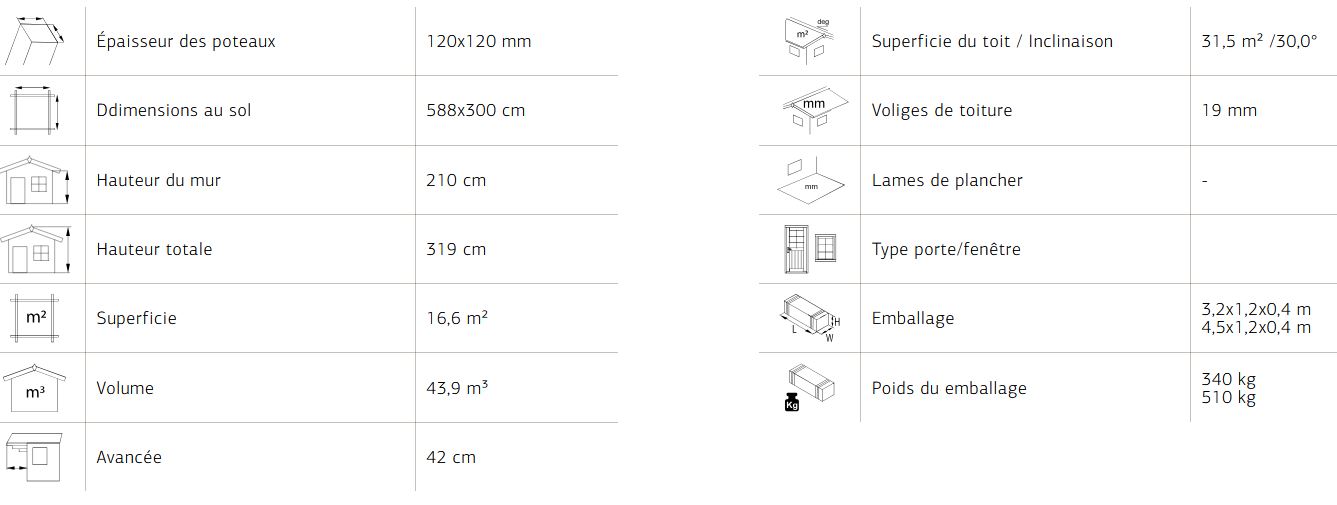Options : couverture Shingle rouge ou noir (16 paquets de 3m²). Traitement usine Gris ou Brun (voir photos)