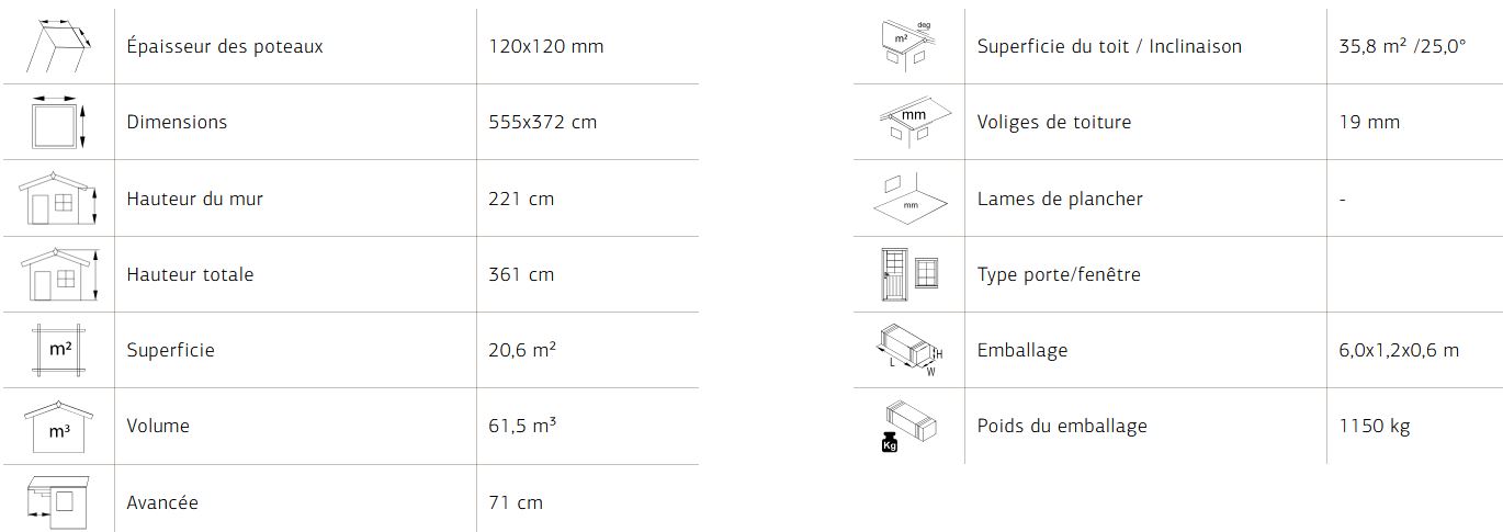 options : Couverture toit shingles noir, rouge, (inclus 14 paquets de 3m²) traitement usine Brun ou Gris vintage.