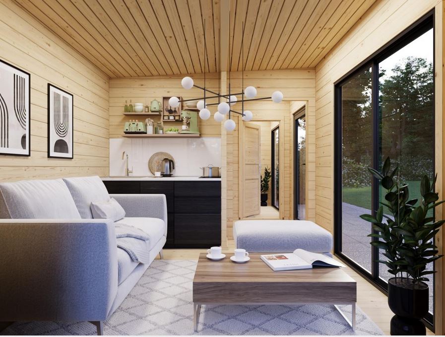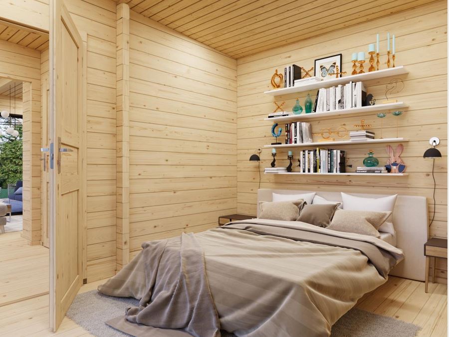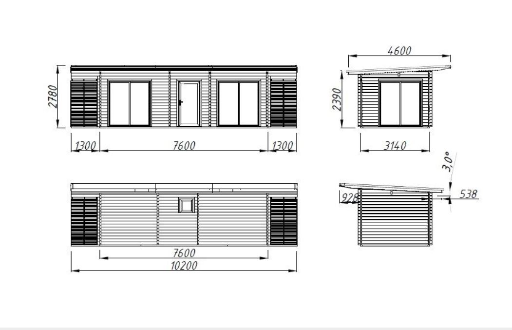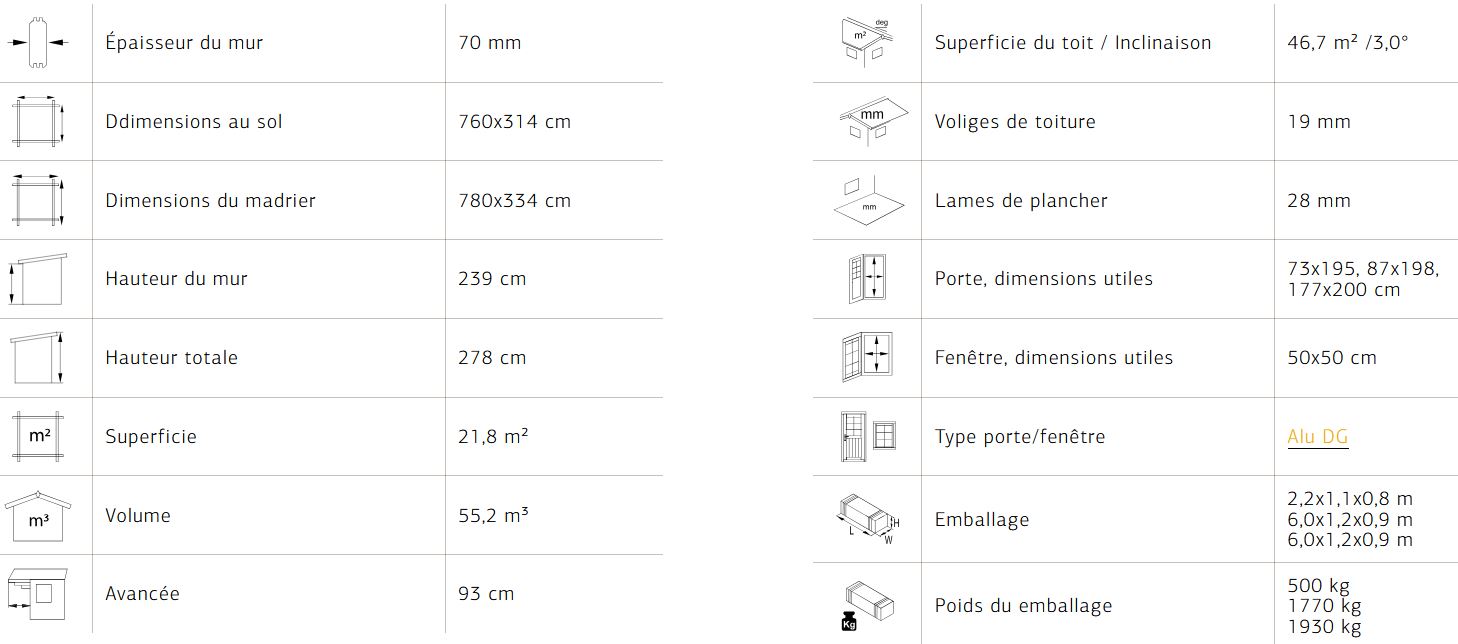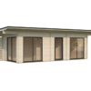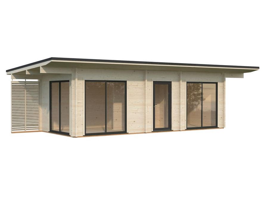 Chalet de jardin idéal pour l’aménagement d’un studio,  il a la particularité d’être lumineux avec ses baies en double vitrage trempé . Réalisé en madriers de 70 mm double emboîtement avec tiges filetées,  il vous garantira une solidité et une aisance de construction. Plancher 28 mm et lambris sous toiture 19 mm. Ce modèle est disponible en 7 dimensions.