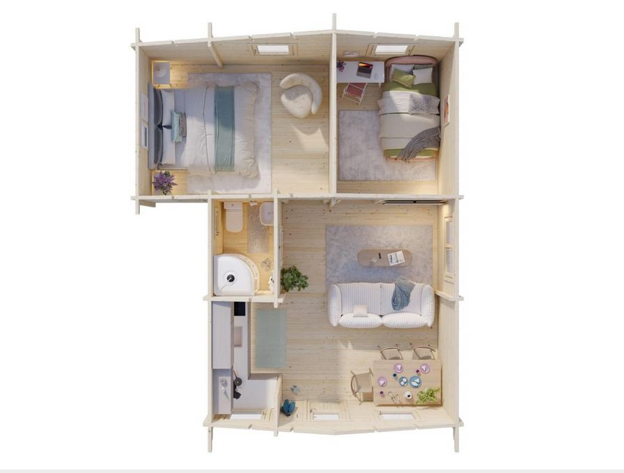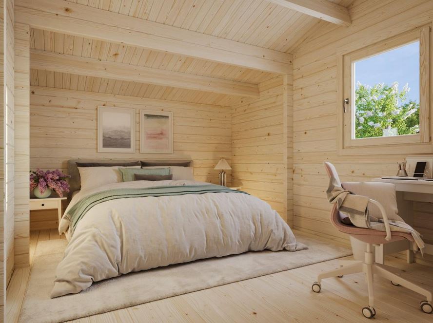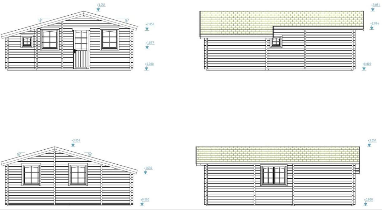 Inclus : Cloison; portes intérieurs; plancher 28 mm et 19 mm, lambris de toiture 19 mm.