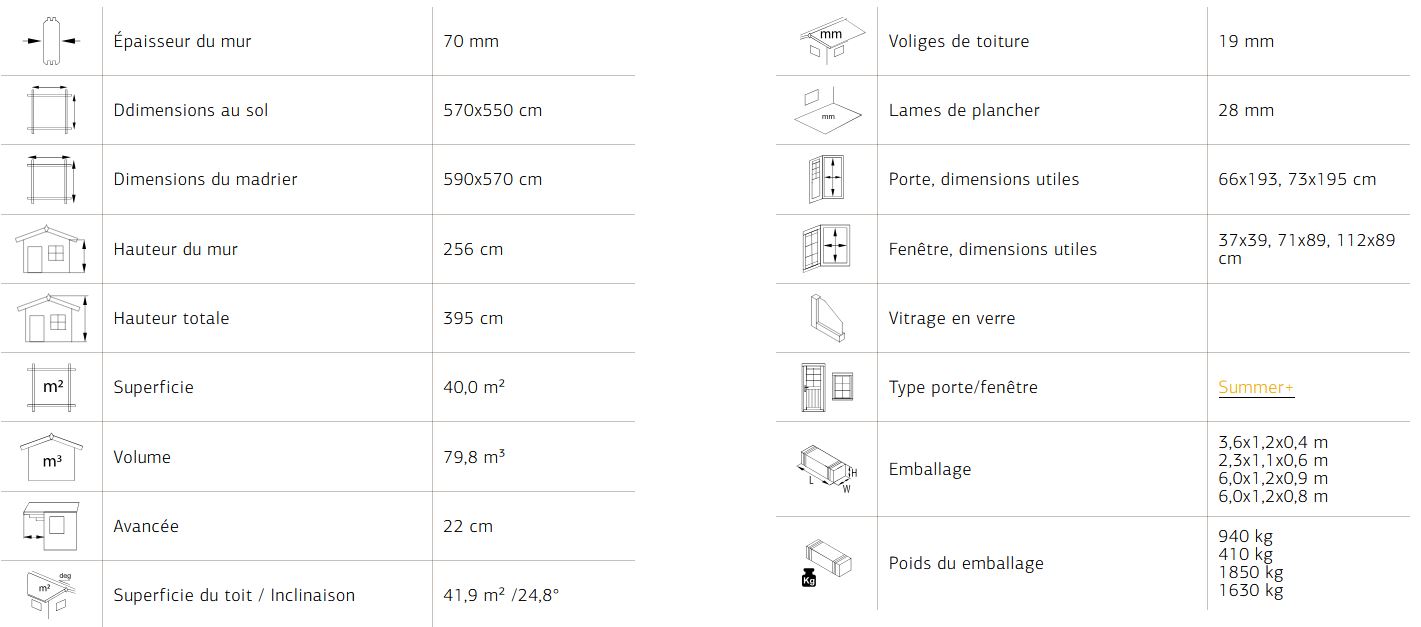 Inclus : plancher 28 mm et lambris de toiture 19 mm.