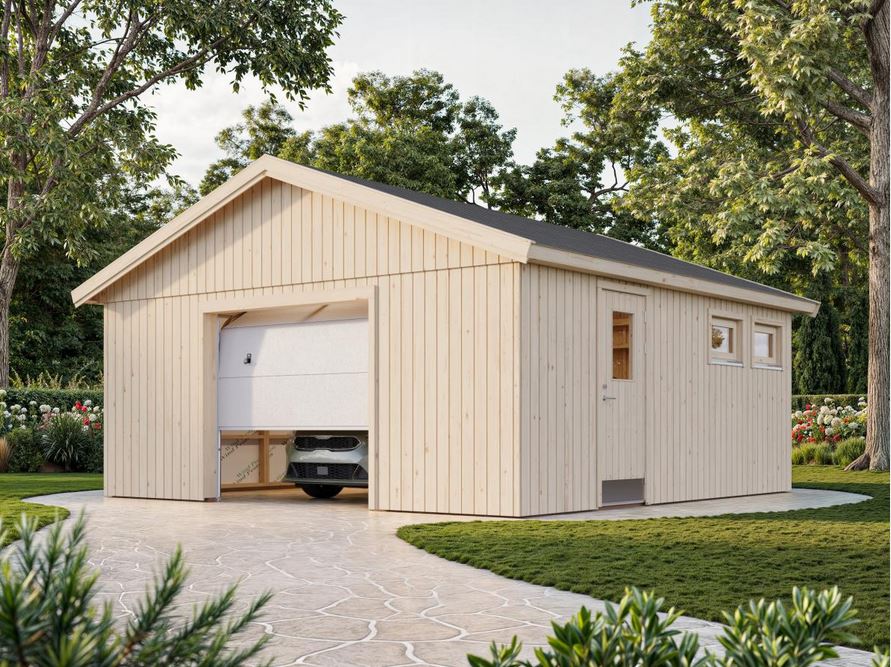 Garage Andre ossature bois 28.5 m² porte sectionnelle