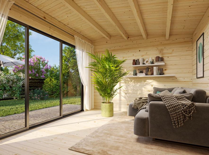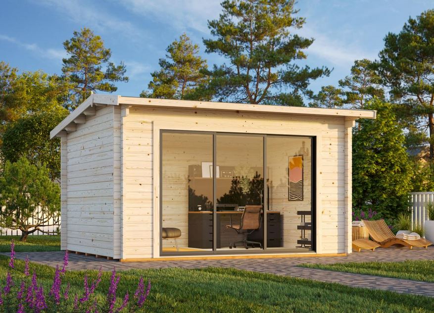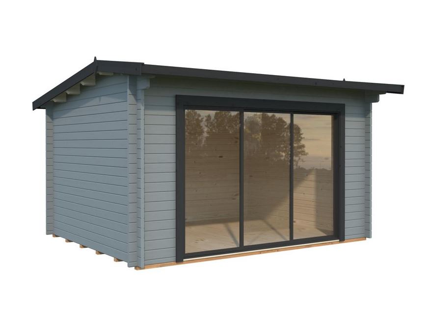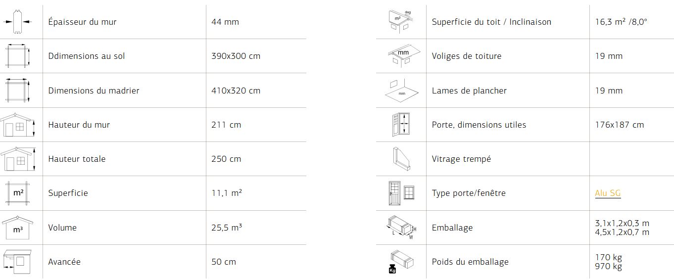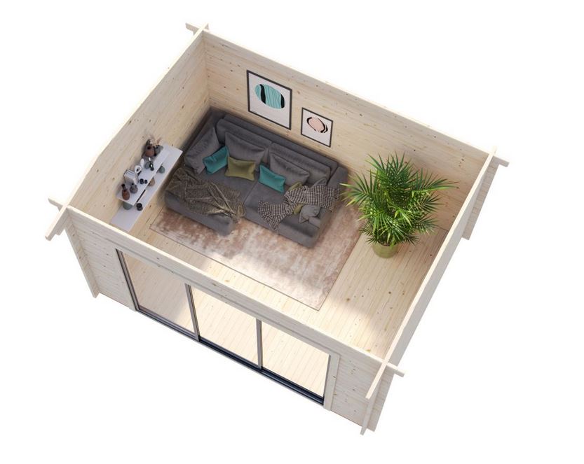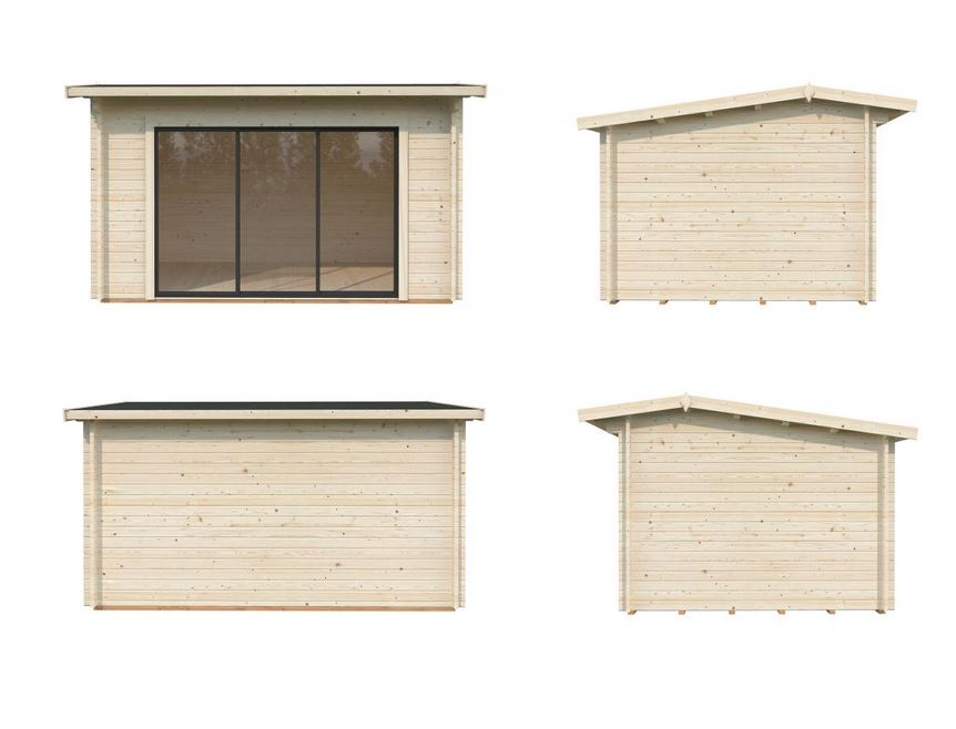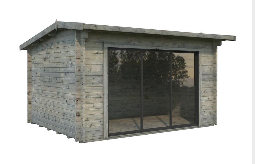 Abri conçu en madriers d’une épaisseur de 44 mm avec double emboîtement, une baie vitrée en verre trempé de 4mm  s’adapte facilement dans l’environnement pour un espace à vivre très lumineux. Ce modèle est vendu sans revêtement de toiture.