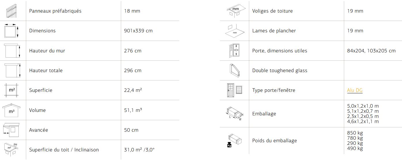 Abri nordique de style contemporain d’une qualité scandinaves appropriés pour les habitations les plus modernes. Les panneaux muraux en ossature pré-montés permettent un assemblage rapide, équipé à l’intérieur d’un film de protection contre le vent et la pluie ce qui le rend très résistant aux intempéries. Son bardage brut extérieur légèrement nervuré lui donne un aspect original et novateur. Tous les modèles ont un double vitrage thermique est des fenêtres ouvrant de l’extérieur. Vous avez la possibilité d’isolé votre abri jusqu’à une épaisseur de 70 mm. Plancher sur poutre de fondation autoclave, et lambris de toiture 19 mm.