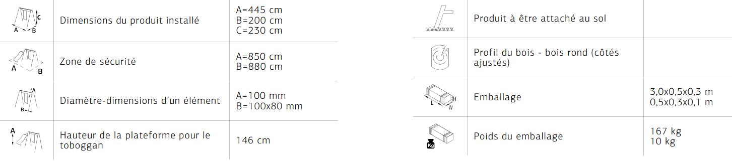 Comprenant : 1 mur d’ escalade avec (5 prises) 2 balancelles