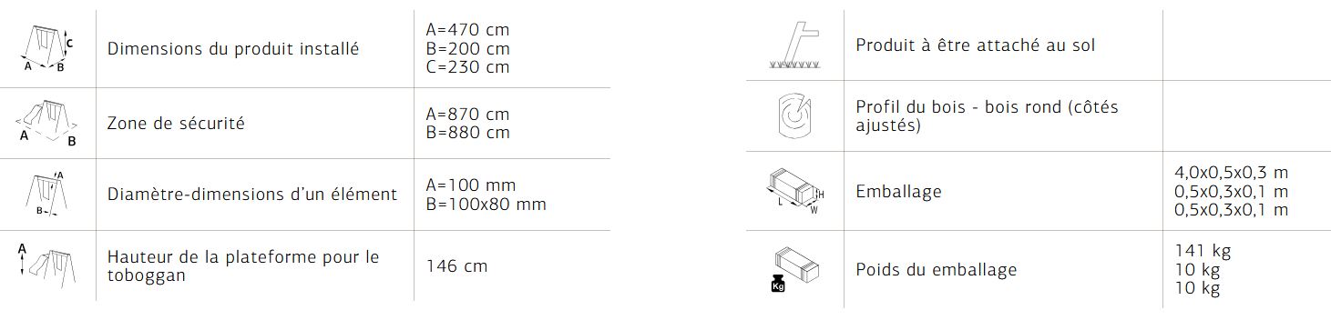 Comprenant : 1 échelle de cordes ; 2 balançoires