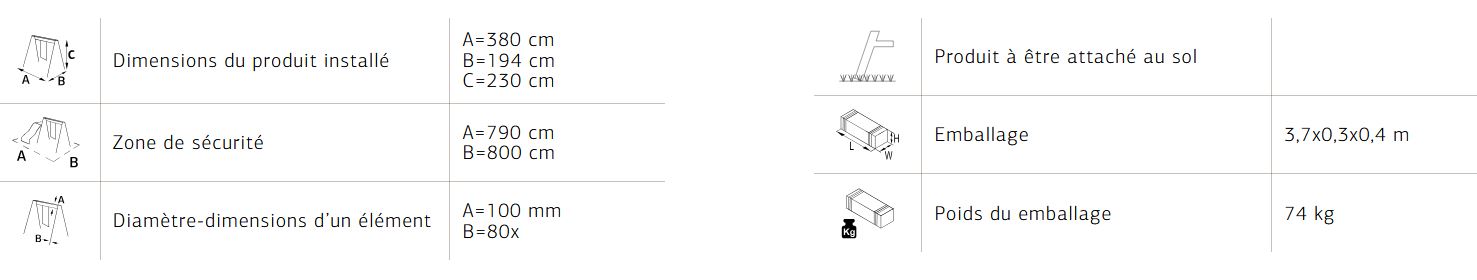 Comprenant : 1 échelle de cordes ; 2 balançoires