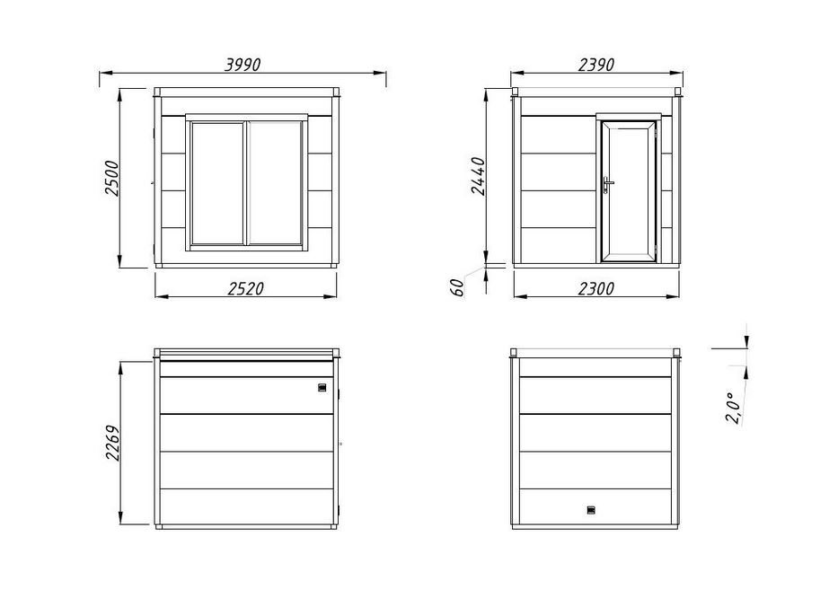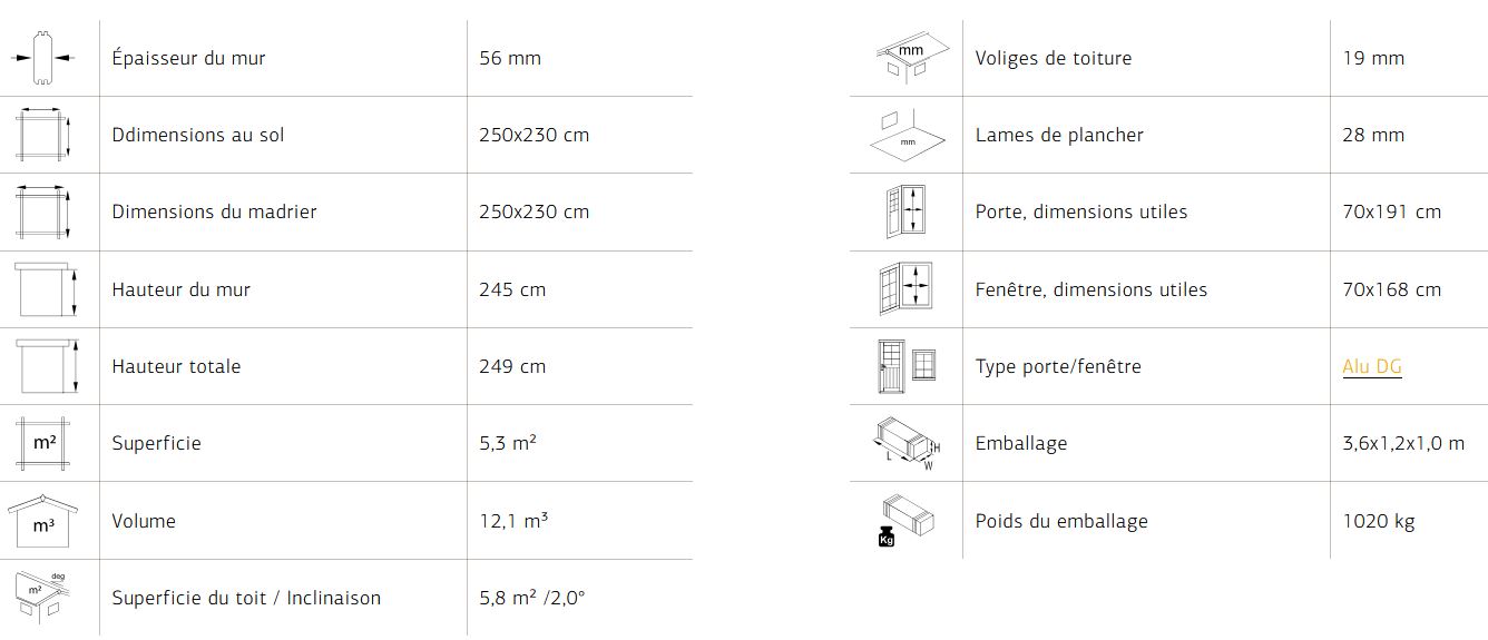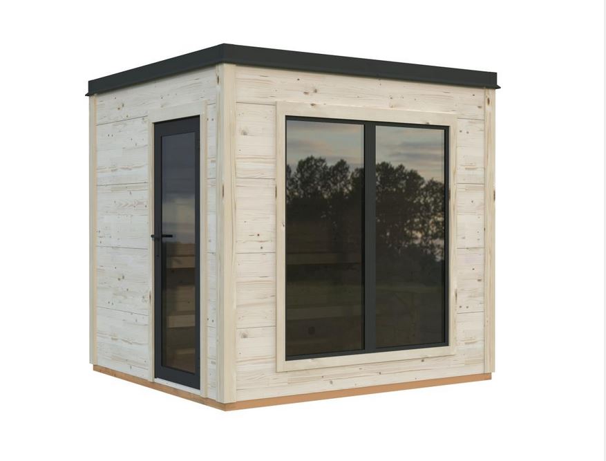 Options :  Couverture en EPDM (colle inclus) pour toit plat et Poêle pour Sauna