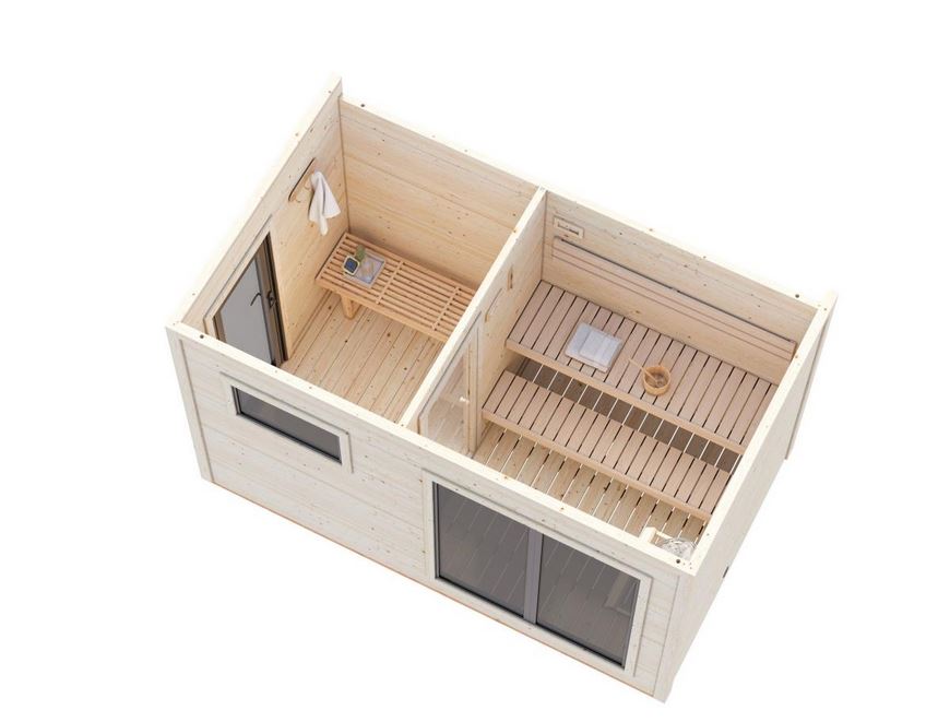 Sauna pour extérieur en Épicéa nordique bois naturel non traité. Il est conçu en panneau de 56 mm vendu en Kit prêt à assembler. Ces dernières années, de plus en plus d’amateurs de sauna en France ont découvert le sauna de jardin de la culture finlandaise. Le poêle est proposé en Option son chauffage électrique domine dans le domaine des saunas de jardin. Il est plus facile à installer car il ne nécessite pas de conduit de cheminée. Peut être vendu peint (voir photos)