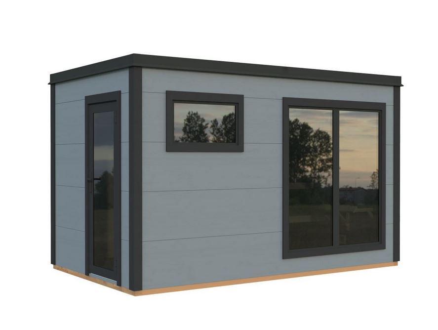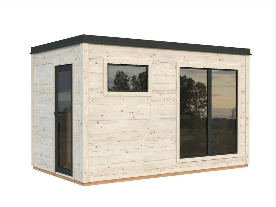 Options :  Couverture en EPDM (colle inclus) pour toit plat et Poêle pour Sauna