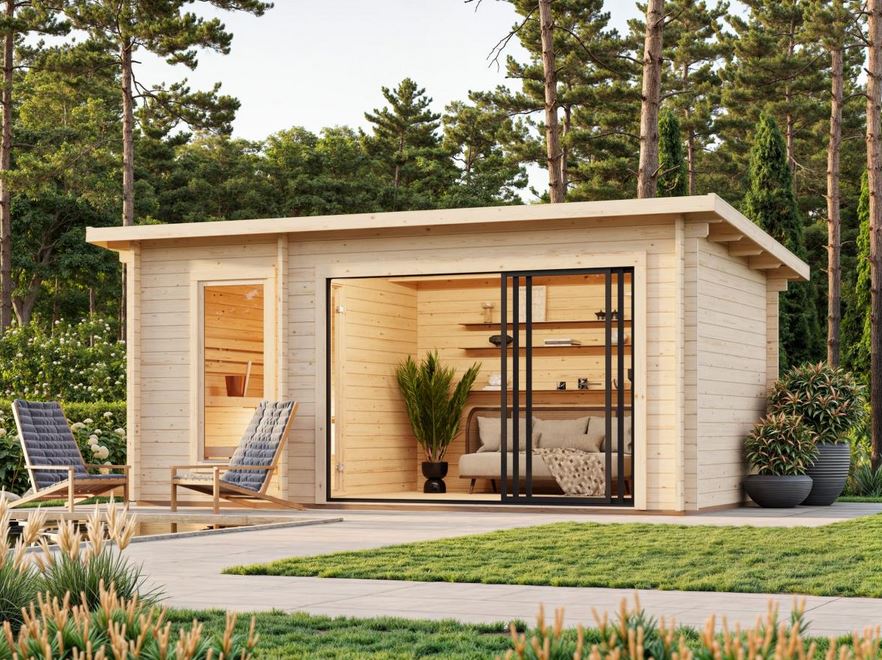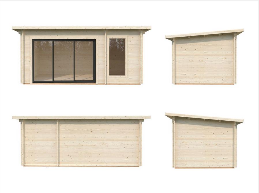Options : Couverture en EPDM (colle inclus) pour toit plat et Poêle pour Sauna